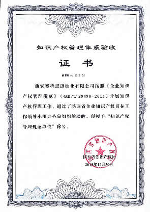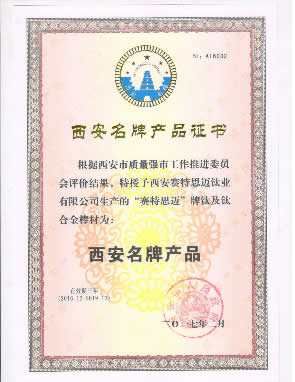 陜西省名牌產品:“SAITE牌鈦及鈦合金棒材”